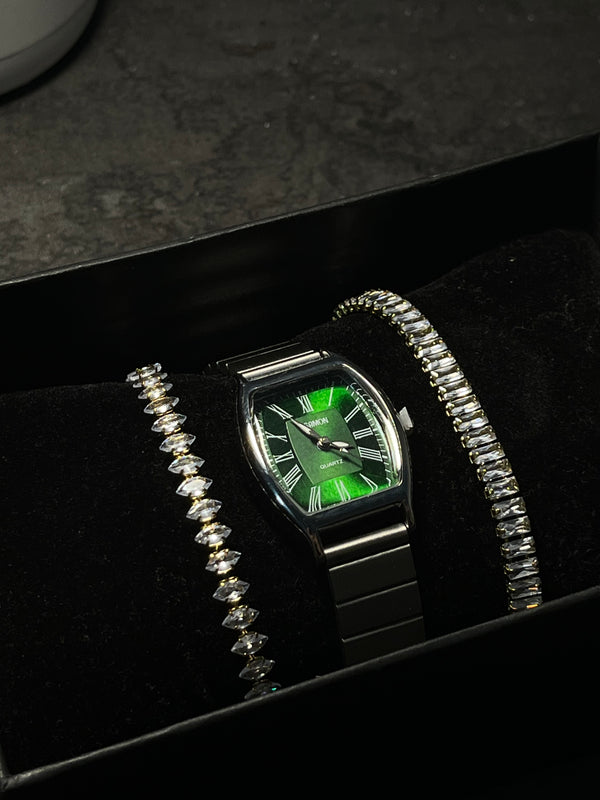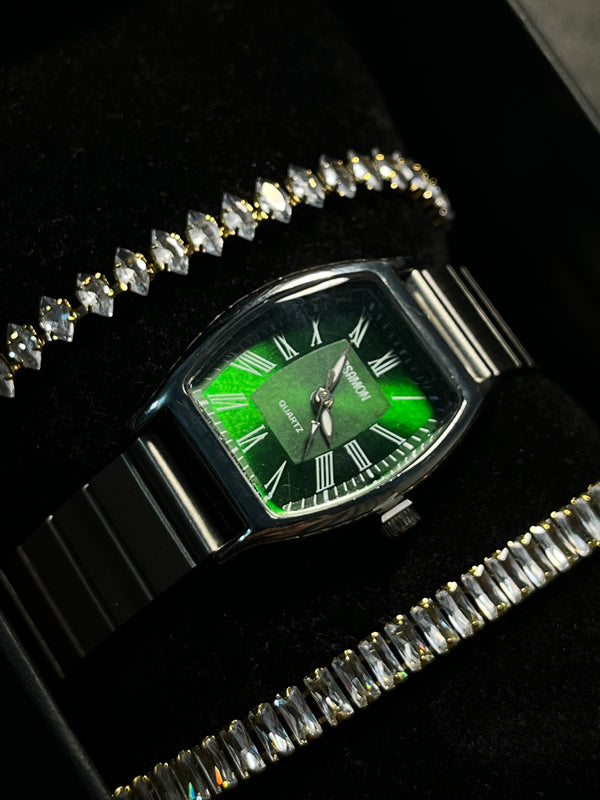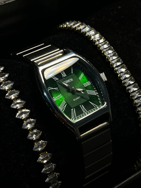 The CEO Stack watch and bracelet set combines refined craftsmanship with sophisticated design, tailored for the discerning executive. This pairing offers a seamless blend of style and functionality, enhancing your professional presence while providing reliable timekeeping and elegant wristwear. Perfect for leaders seeking to make a confident and polished statement in any business setting.