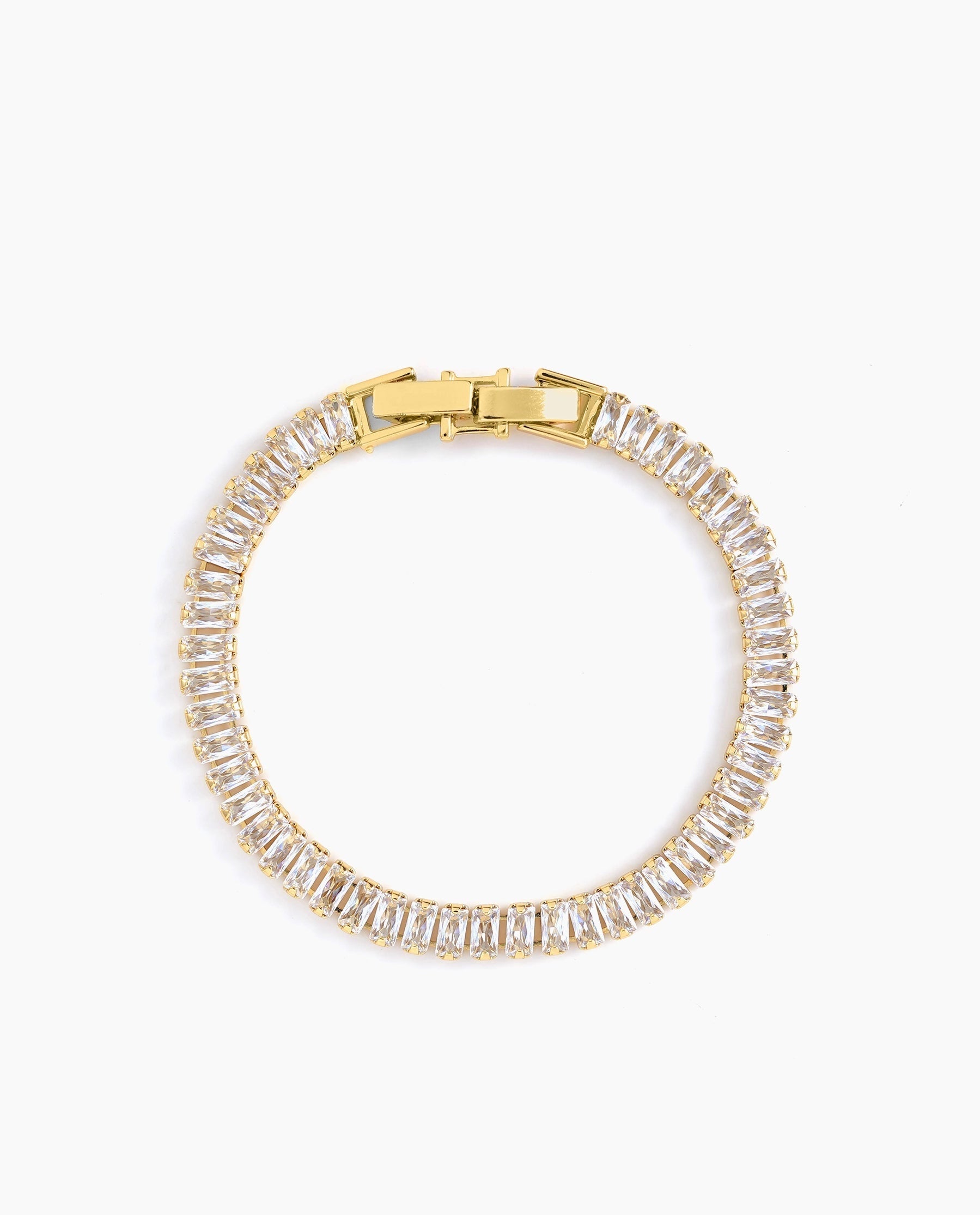 Gold-plated and silver bracelet lined with sparkling rectangular zircon stones for full shine. Great for weddings, festive looks, or when you want your wrist to glow.
