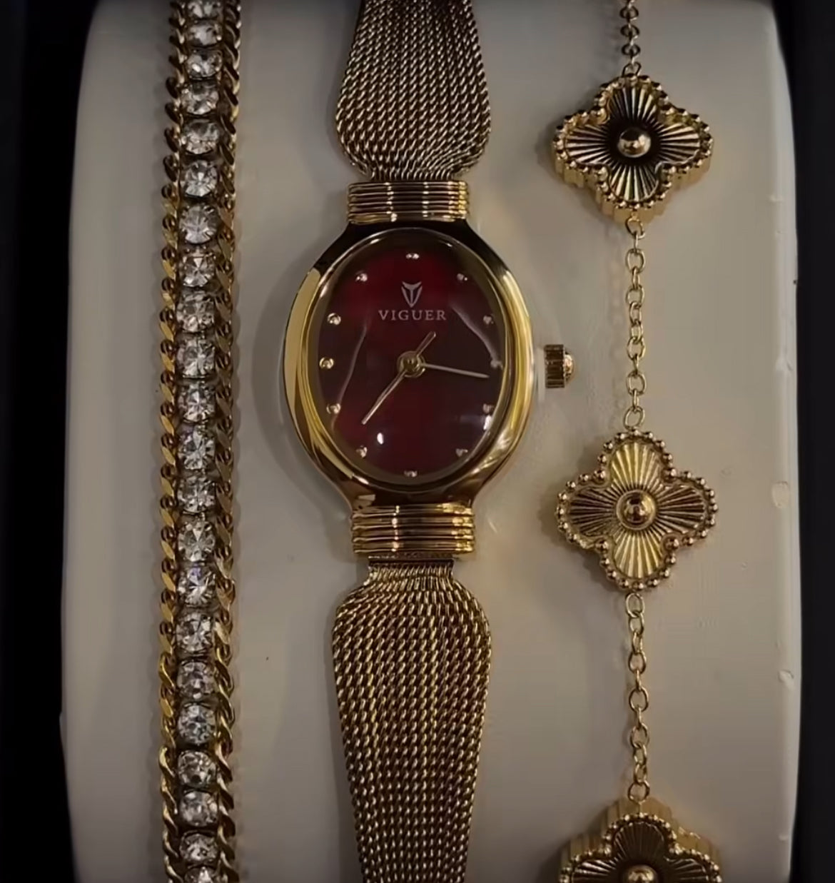 As a product expert, I highly recommend the Midnight Wine Luxe Set. It boasts anti-tarnish and hypoallergenic properties, ensuring long-lasting wear without any skin irritation. Plus, it is water and sweat proof, maintaining its pristine condition for years to come. Don't miss out on this must-have set.
